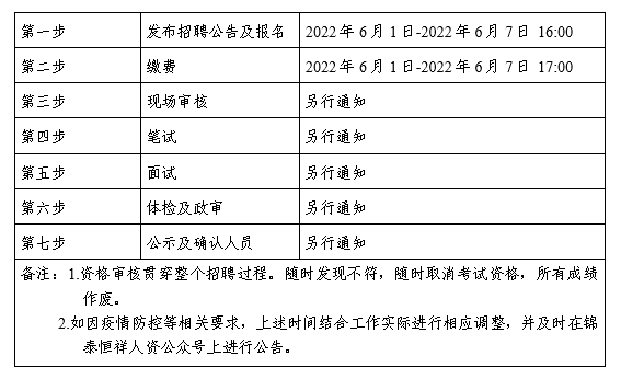 ?2022年6月1日至2022年6月7日16:00 在錦泰恒祥人資官網(wǎng)(www.jthxhr.com)、“錦泰恒祥人力資源服務(wù)有限公司”微信公眾號(hào)、“國(guó)控集團(tuán)”官方網(wǎng)站(m.hnbzcy.com)及上級(jí)部門(mén)要求的相關(guān)網(wǎng)站等發(fā)布招聘公告。